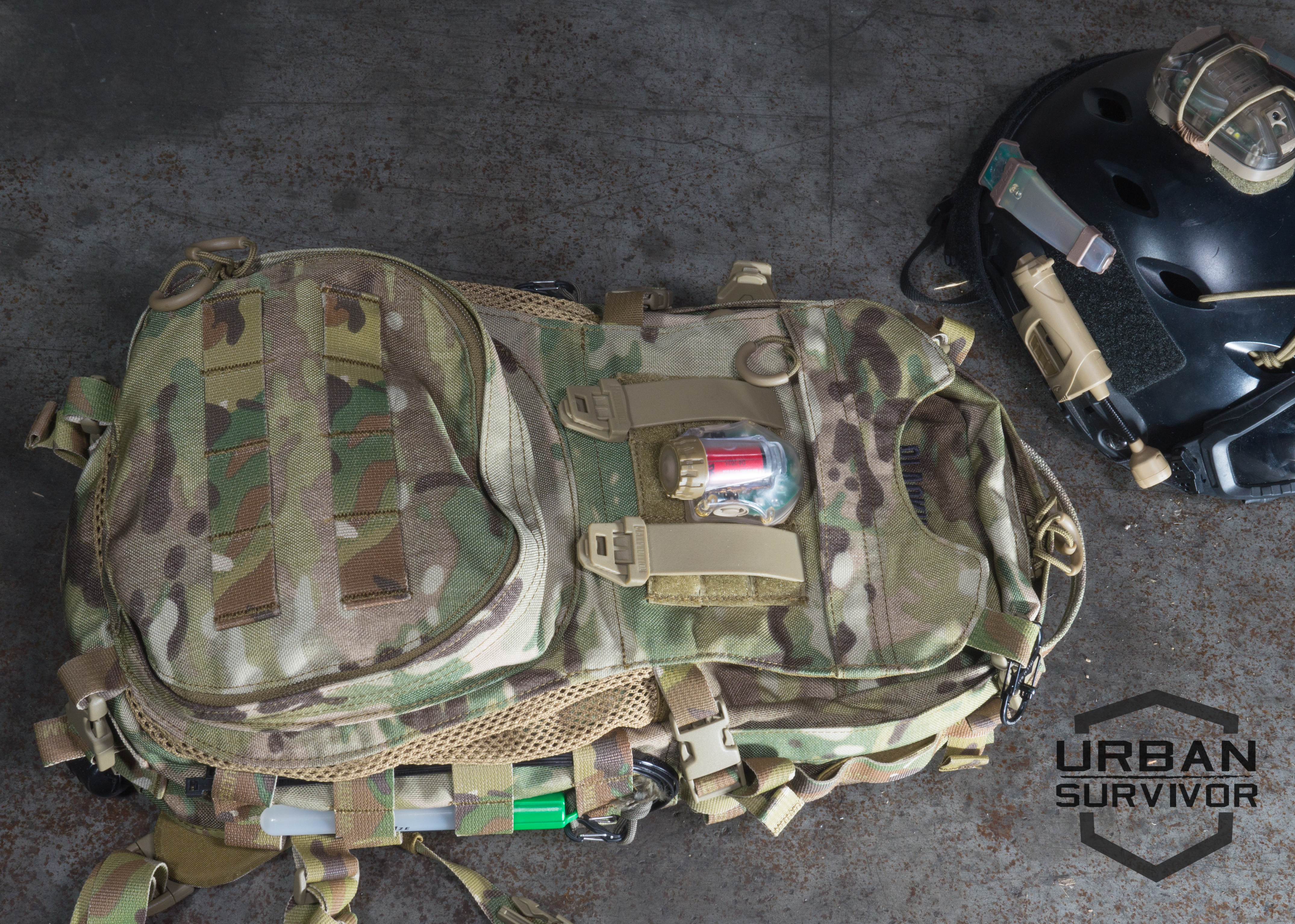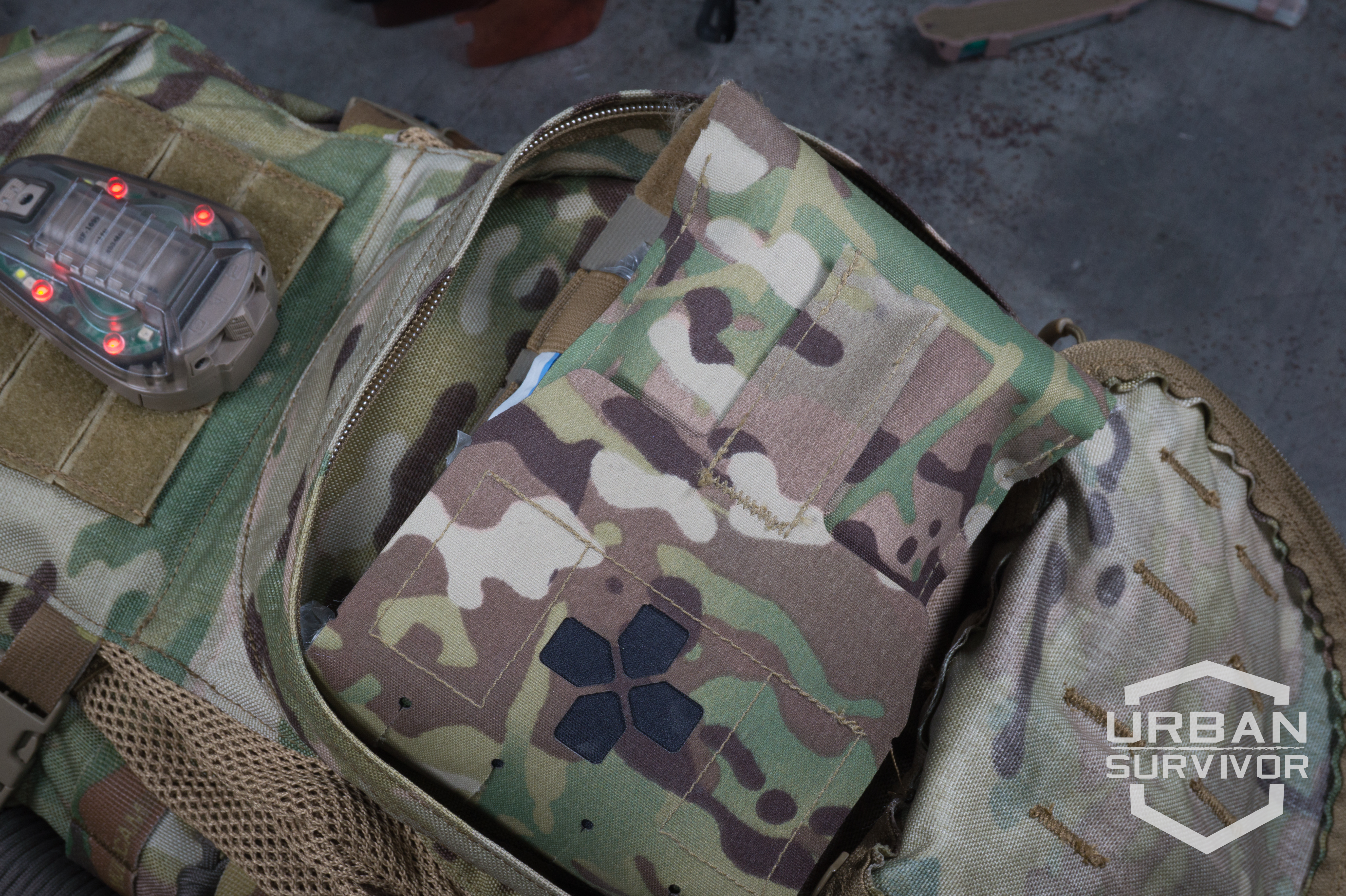 During night MTB rides, and for signaling in general, we have secured on this surface red and green Chemlights or Nitizes on the respective side. The loop panel on the 3 x 3 PALS section is extremely useful for attaching S&S Precision V-Lites or Manta Strobes. It could also fit the CORE Survival HELSTAR 6 but because of its larger size and weight we don’t recommend it.